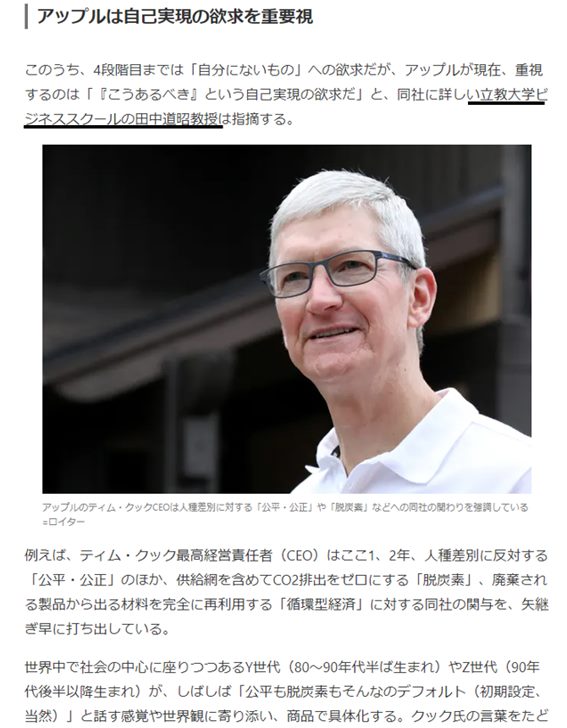 特にAppleについて、私自身が予ねてより述べてきた、自己実現の欲求にまで訴求したライフブランドであること、「デジタル×グリーン×エクイティ」という新たな価値観においても先進的な取り組みをしていることなどをDeep Insightというまさに深い洞察に持ち溢れた記事の中でご紹介いただいたこと、格別に有難いことであると感謝しております。